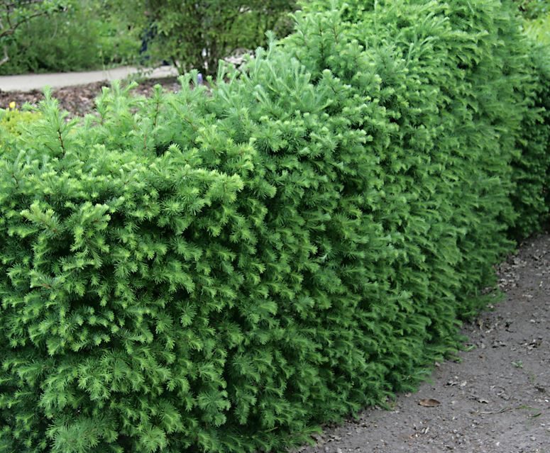 Hekken feller nålene om vinteren og om våren kommer det nye friske grønne nåler, samtidig som hekken blomstrer.