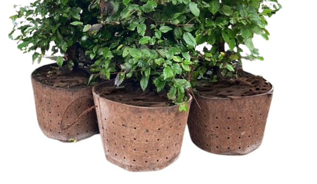 Hekkelementene leveres i en biologisk nedbrytbar boks. Boksen har håndtak og flat bunn, som gjør transport og planting svært effektivt. Hele planten – inkludert boksen – settes rett i jorden, uten plast eller annet avfall. Fordi boksen er større enn en vanlig rotklump, får du med flere røtter og sikrer bedre etablering og vekst.